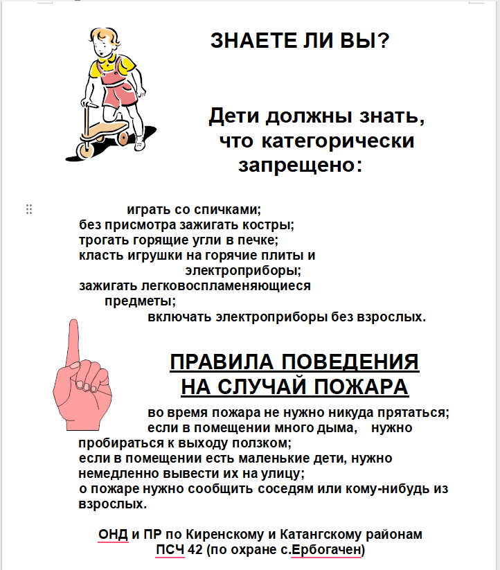 - Если в комнате огонь, нужно выбираться из нее на четвереньках и звать взрослых!