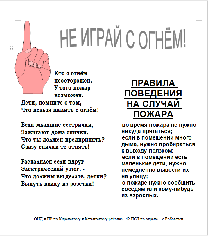- запишите и положите возле телефонного аппарата номер Пожарно-спасательной части «01» (со стационарного телефона), номер Единой дежурно-диспетчерской службы муниципального образования «Катангский район» «112» (с мобильного телефона);